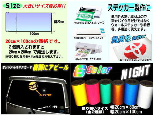 内装・外装・屋外・車・バイクのカスタム、OKです!【サイズ】ご購入のサイズは、商品タイトル(商品名)記載のサイズ全2サイズ(幅の変更不可)・A4サイズ(幅20cm×30cm)・大サイズ(幅20cm×100cm)※最大長45mまで【カラー】ご購入のカラーは、商品タイトル(商品名)記載のカラー全6色赤(レッド)/柿(オレンジ)/銀(シルバー)/黄(イエロー)/緑(グリーン)/青(ブルー)店舗・工場の表示物、看板、車輌(車両)サイン、ヘルメット装飾、カーラッピング、ボート・航空機の装飾、携帯電話、スマートフォンやタブレットのラッピング、切り文字やイラストのカッティング、屋外用デザインステッカーあらゆる用途でご使用頂けます。