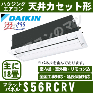 ★200円クーポン配布中★☆【500円OFFクーポン有】【メーカー直送(取寄商品)】【送料無料(沖縄/離島除く)】ダイキン■S56RCRV-WF■(フレッシュホワイト/フラットパネル込)【天埋カセット1方向-うるるとさらら】【シングルフロー】[主に18畳用](※加湿ホース別売)