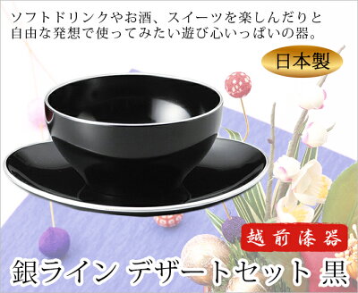 カップ&スイーツ 酒器 スウィーツ デザート ソフトドリンク 日本製 来客 越前漆器 艶 シンプル 上品 器 漆器 おすすめ 銀ライン デザートセット 黒 1005206